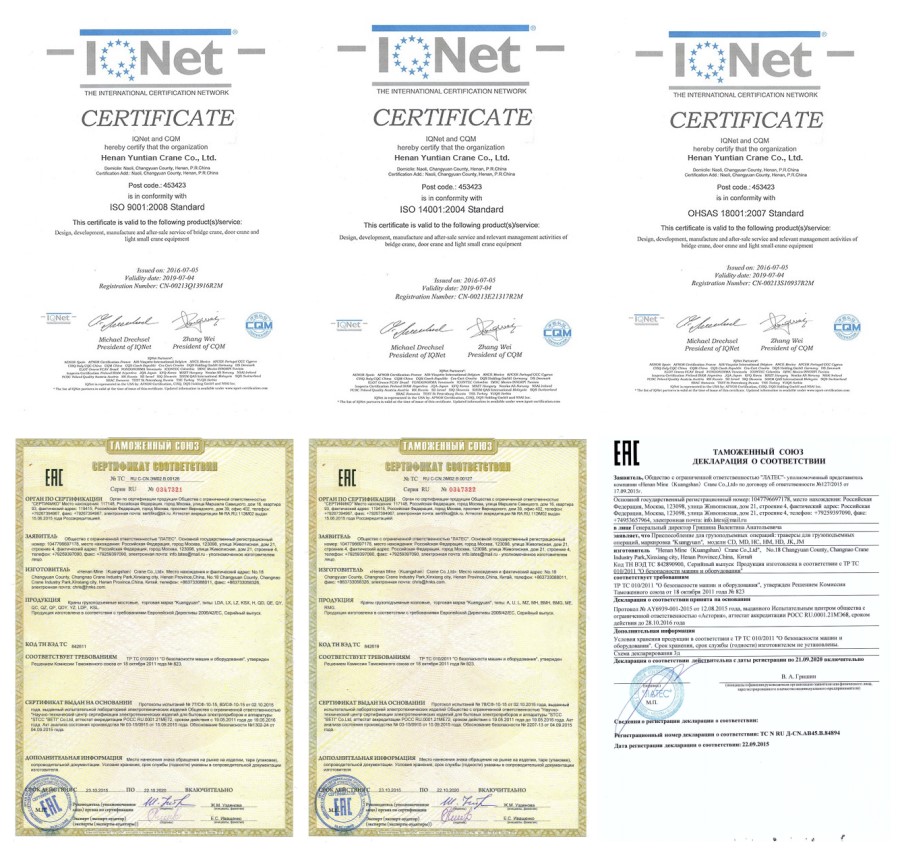 המנוף שלנו עבר CE, ISO, GOST, SGS, TUV, BV, וכן הלאה.
